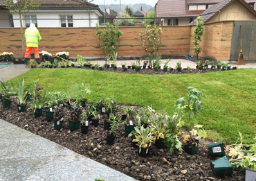 Staudenbepflanzung Zufahrtsstrasse Staudenbepflanzung Grossbäume pflanzen: Liquidambar styraciflua - Amberbaum
